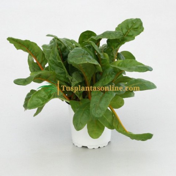 Es una planta herbácea bianual, cultivada como anual, con hojas grandes, de color verde brillante y nervadas.