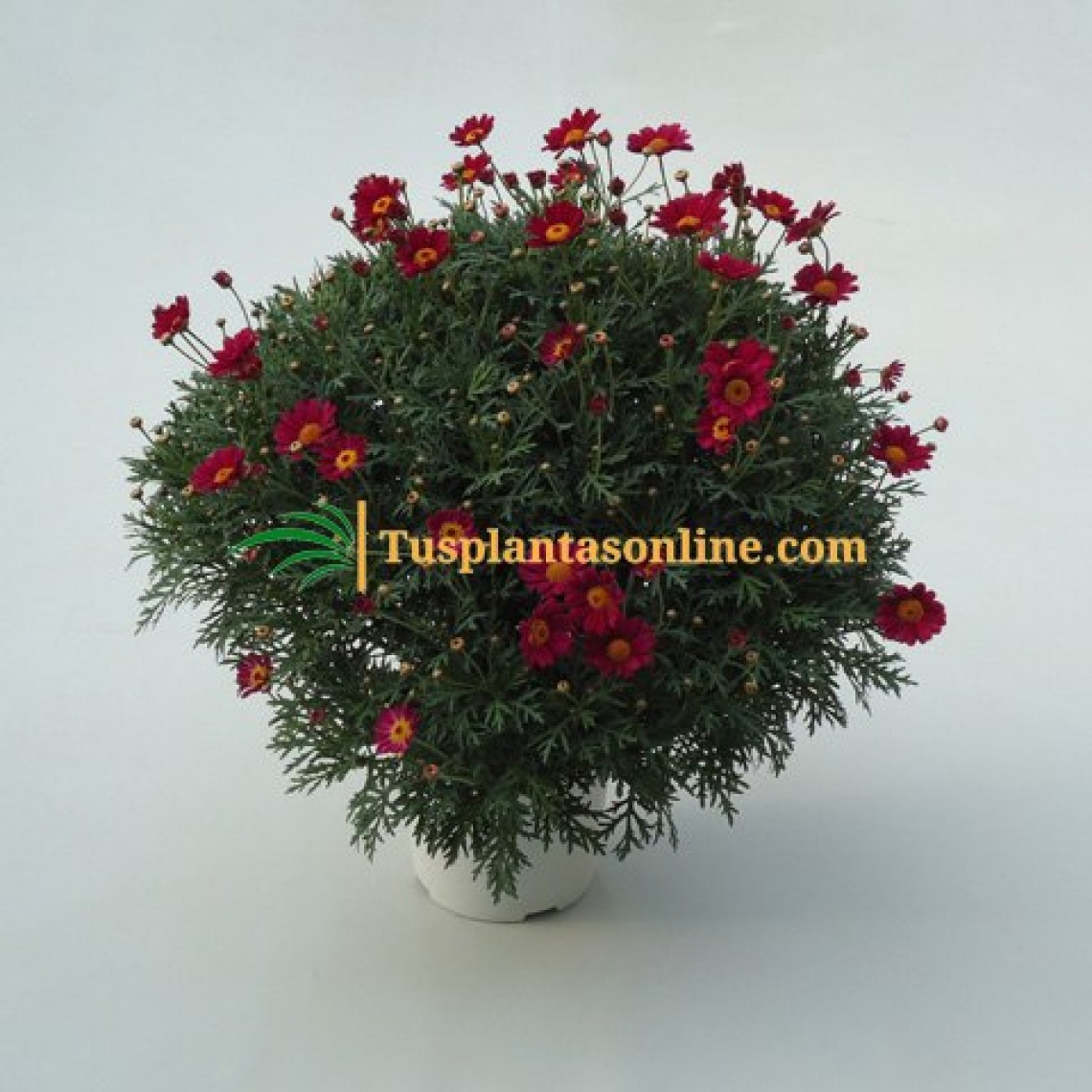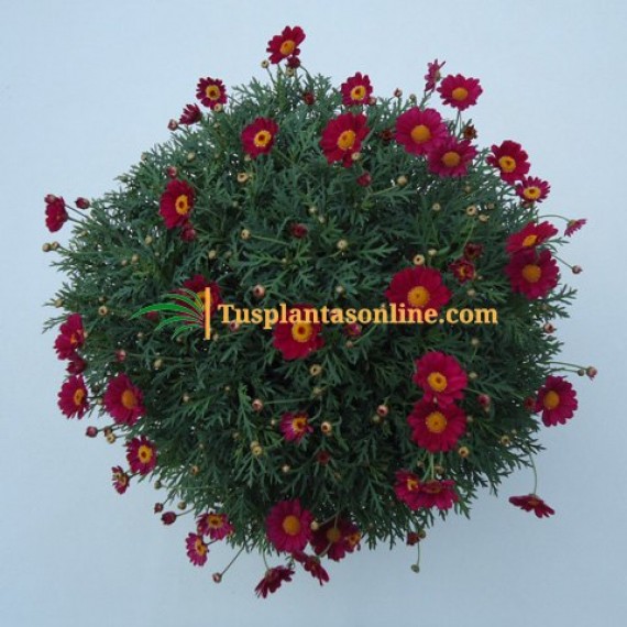 Argyranthemun frutescens, conocida como Margarita leñosa, Margarita de Canarias es una planta ornamental compacta y voluminosa de crecimiento erguido. Podemos encontrarla en gran variedad de colores, aunque el más habitual es el blanco.