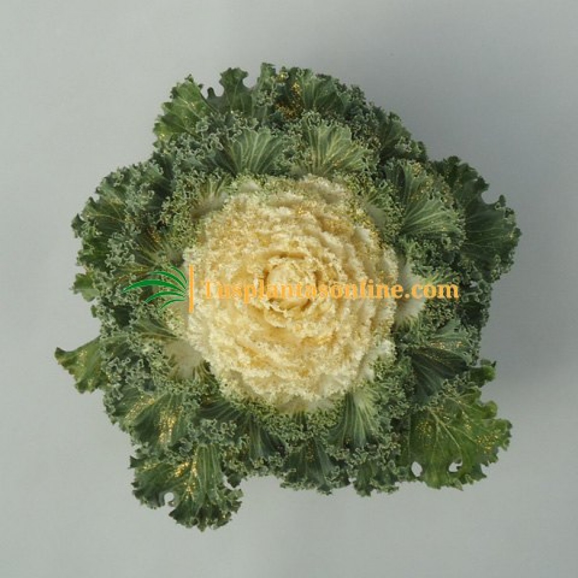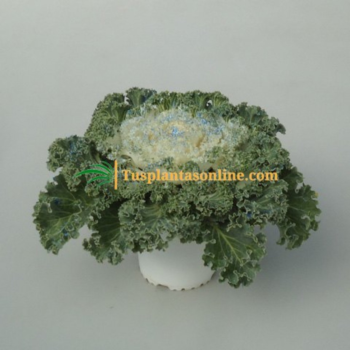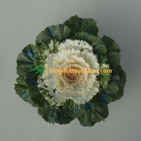 Brassica oleracea, conocida como col ornamental, berzo ornamental, col de jardín, repollo de adorno, es una planta invernal con grandes hojas rizadas que se abren en forma de roseta en varias tonalidades, rojo, rosa, amarillo y blanco.La col ornamental es utilizada para decorar y dar vistosidad a jardines, balcones o terrazas en los meses de invierno por su resistencia al frío y por los alegres colores de sus hojas que se realzan con el frío.Es una planta de exterior a pleno sol.Su riego ha de ser abundante y regular sin dejar secar el sustrato y evitar los encharcamientos.