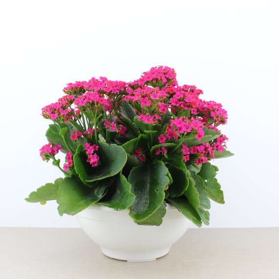El centro de 25 cm de diámetro contiene varias plantas de kalanchoe y el resultado es espectacular.
