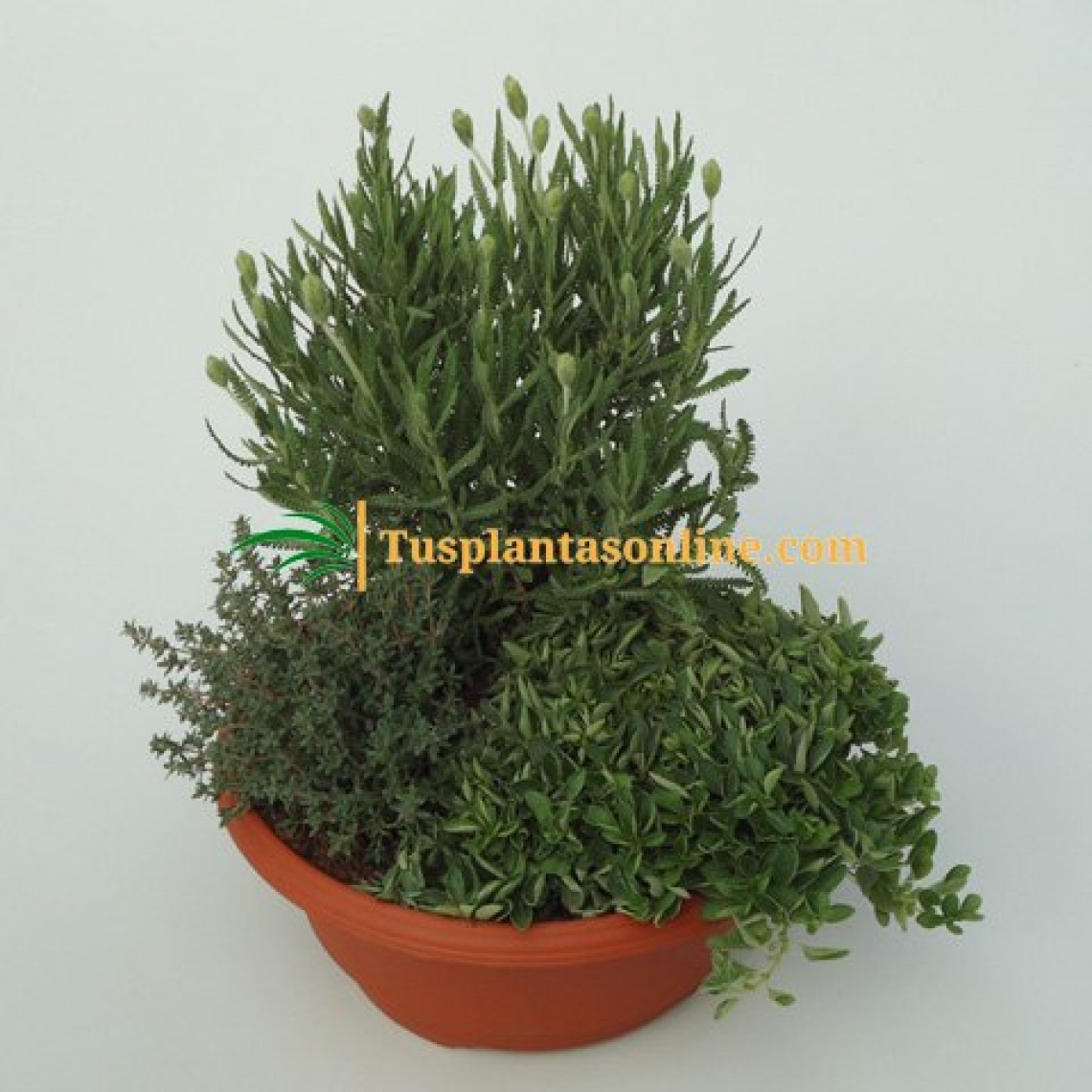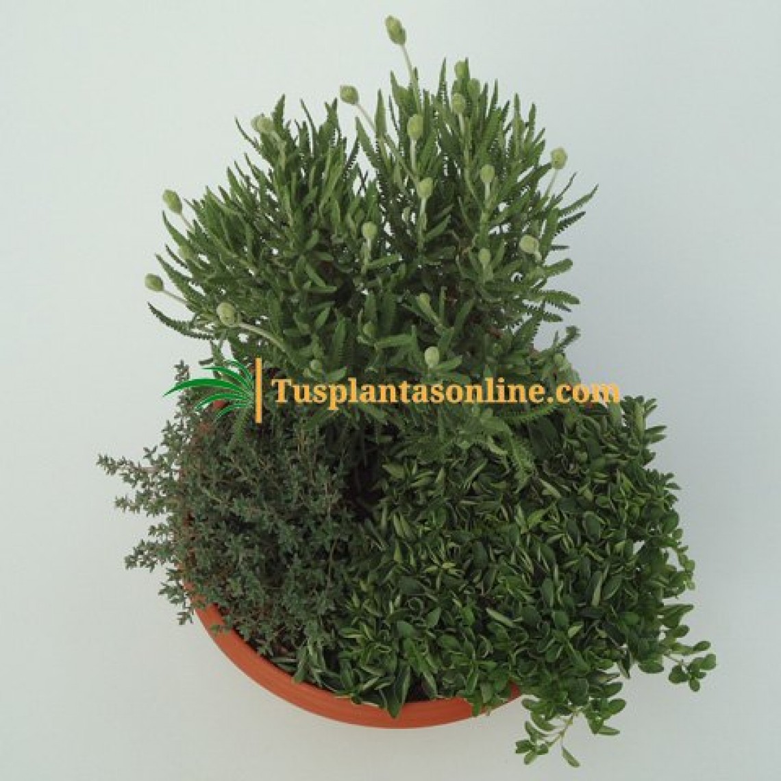 Centro compuesto por 3 aromáticas de comportamiento similar en vigor de crecimiento y en exigencia de riego. Su crecimiento es más lento y su riego escaso.
