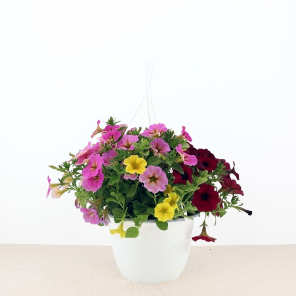 Calibrachoa, conocida como petunia calibrachoa, es una espectacular planta de porte colgante con una abundante y colorida floración ideal para cultivarla en terrinas, jardineras, macetas… y colocarla en terrazas, balcones…