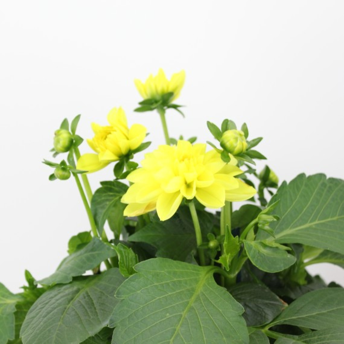 La dahlia es una planta herbácea con un frondoso follaje y con delgados tallos de donde nacen sus llamativas flores. Hay una gran variedad de colores y formas.