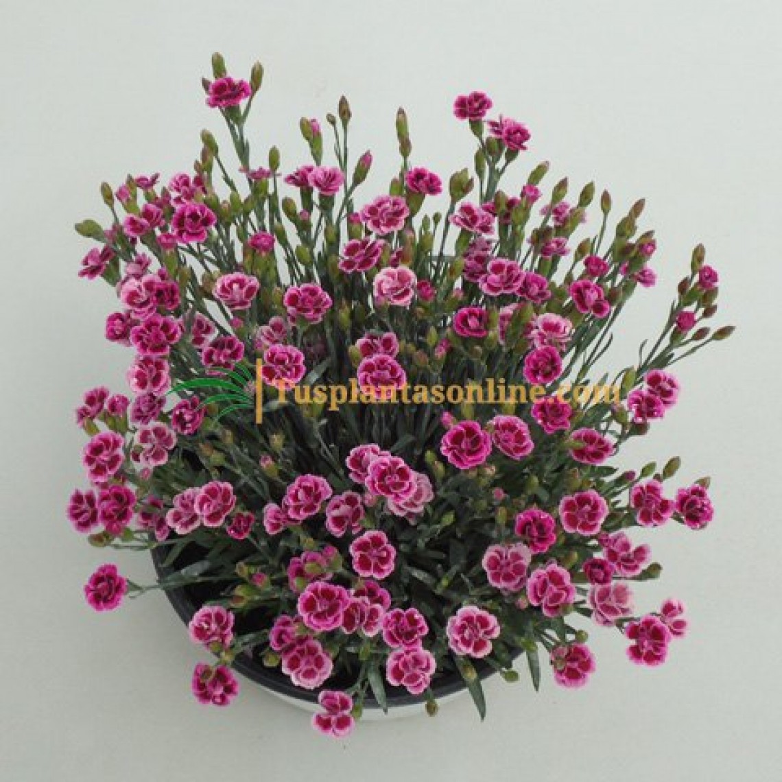 Dianthus pink kisses, conocido vulgarmente como clavel, es una planta muy popular por sus atractivas flores y normalmente se cultiva en maceta para decorar jardines, balcones y terrazas.
