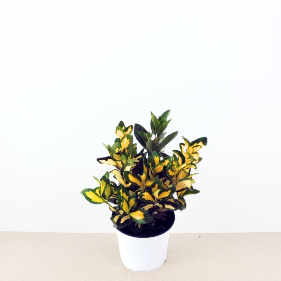 El Euonymus Picta Luna es una planta decorativa de hojas variegadas verde y amarillo, ideal para exteriores. Resistente y fácil de cuidar, perfecta para quienes buscan bajo mantenimiento.