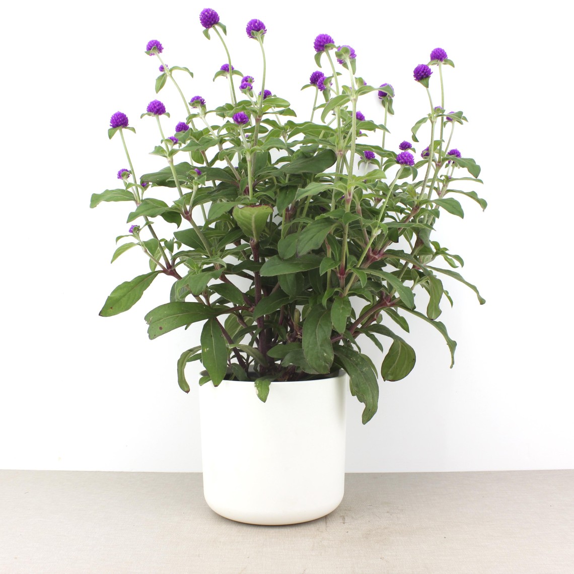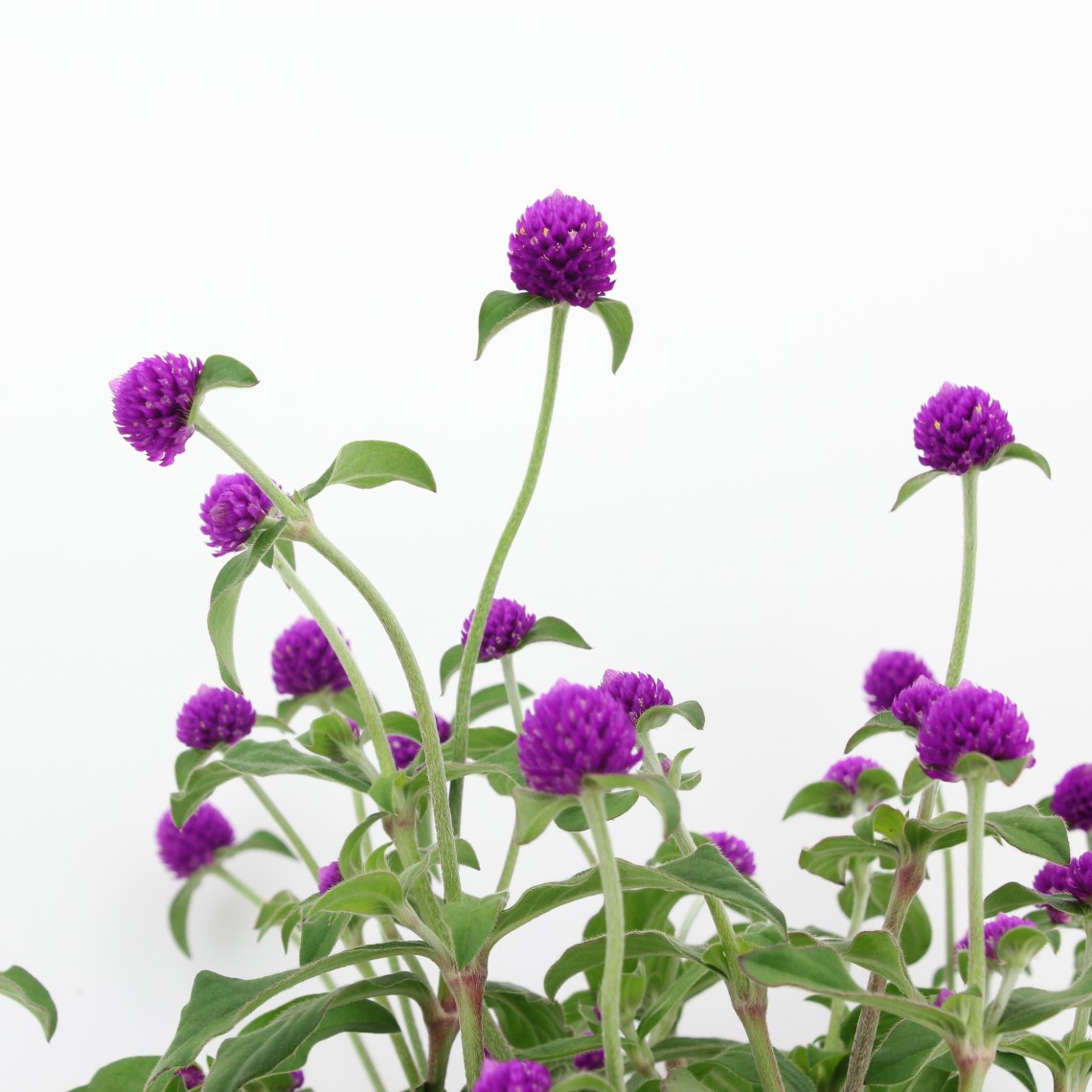Gomphrena, también conocida como siempreviva o botón de gloria. Es una planta con flores pequeñas y redondeadas que se mantienen durante mucho tiempo, incluso después de secas. Muy resistente y de bajo mantenimiento, es ideal para jardines soleados, balcones o macetas, aportando colorido durante toda la temporada cálida.