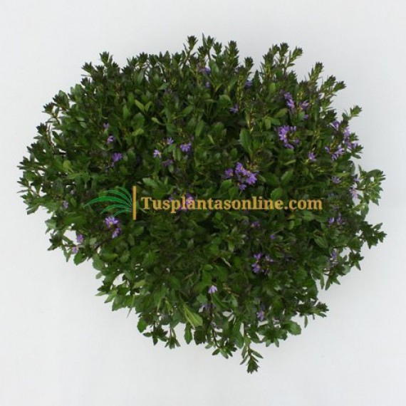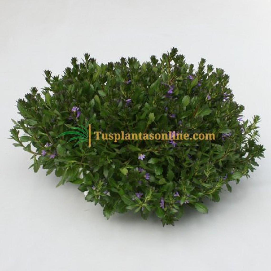 Posee unas hojas dentadas color verde intenso y una pequeñas flores con 5 pétalos en forma de abanico. Sus flores suelen ser de un tono azul violáceo intenso, y también en tonos blancos o rosados.