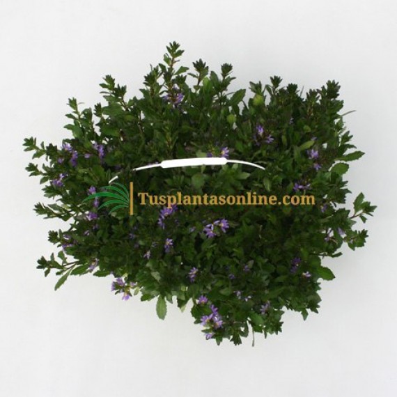 Posee unas hojas dentadas color verde intenso y una pequeñas flores con 5 pétalos en forma de abanico. Sus flores suelen ser de un tono azul violáceo intenso, y también en tonos blancos o rosados.