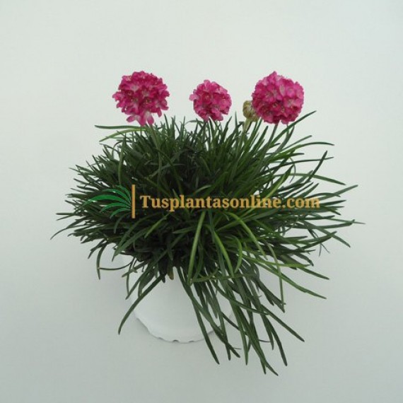 Pack de 10 unidades de armeria marítima.Armeria marítima, conocida como armería o césped de España, es una planta perenne que puede extenderse a modo de alfombra debido a su gran follaje compuesto por hojas estrechas y alargadas de color verde oscuro que se asemejan al césped, de ahí el nombre que recibe.La armería marítima posee unas llamativas/atractivas flores de intenso color blanco, rojizo, lila o rosa fucsia que florecen en primavera, verano y otoño.Es una planta ornamental utilizada para cubrir superficies y espacios rocosos combinada con otras plantas a modo de tapiz.Es una planta de exterior a pleno sol, que puede ubicarse en zonas próximas al mar.Su riego debe ser más bien escaso y el suelo bien drenado, el exceso de humedad le perjudica.Se desarrolla en climas templados, aunque soporta el frío moderado. Es conveniente proteger de temperaturas bajas muy intensas.Puede indicar los colores o las especies de las plantas de cada Pack en el apartado comentarios, que encontrará al final de su proceso de compra. También puede enviar un correo a info@tusplantasonline.com o llamar al 626259448 donde tomaremos nota de su pedido o resolveremos cualquier duda totalmente encantados.