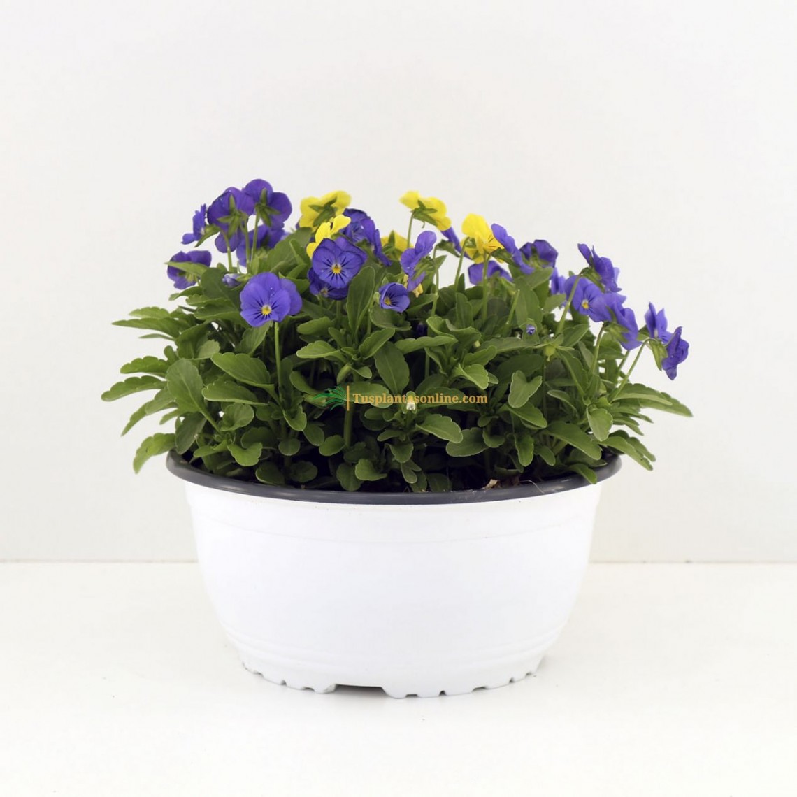 Su flor de pequeño tamaño se despliega en pétalos de color violeta, amarillo, violeta-amarillo, granate, granate-amarillo.