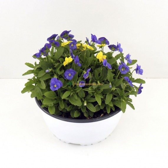Viola cornuta, conocida vulgarmente como violeta, pensamiento mini o violeta de los pirineos, es una planta de temporada invernal muy utilizada por su bella flor para decorar jardines, terrazas o balcones.