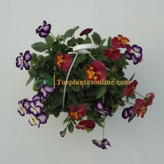 Su flor de mayor tamaño que la viola cornuta se despliega en pétalos de colores bicolor violeta-amarillo, granate-amarillo....